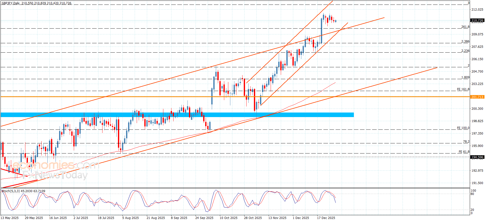 Trods stokastiske forsøg på at skabe negativ momentum, opnås den primære stabilitet inden for den bullish kanals niveauer ved at danne ekstra nøglestøtte ved 195,90-niveauet, hvilket får os til at vente på at opsamle positiv momentum for at lette missionen med at bryde den tidligere nævnte barriere og åbne vejen for at registrere ekstra gevinster, der kan begynde ved 199,30 og nå den bullish kanals modstand ved 200,60.