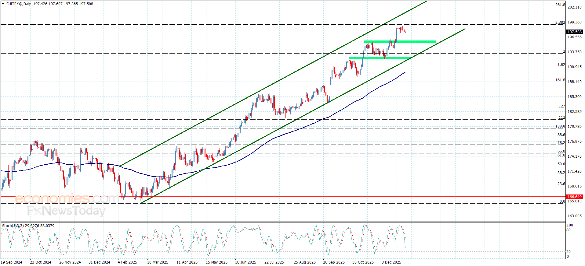 CHFJPY registrerede adskillige gevinster i den seneste periode, idet den udnyttede sin stabilitet inden for de bullish kanalniveauer og dannede vigtig ekstra støtte på 195,90-niveauet, hvilket tvinger den til at danne nogle bearish korrigerende bølger ved at nå 197,35.