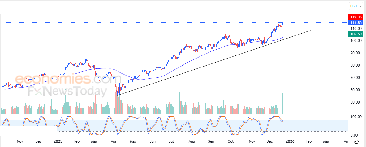 Derfor forventer vi, at aktien vil stige i den kommende handel og sigte mod det nærliggende modstandsniveau på $119,00, med stærke chancer for et udbrud.