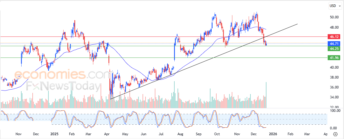 Derfor forventer vi, at aktien vil falde i den kommende handel, især hvis den bryder det nævnte støtteniveau på $44,25, og derefter sigter mod det næste støtteniveau på $41,95.