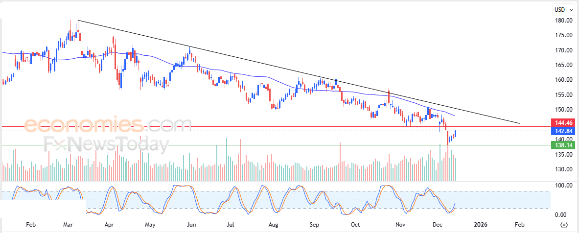 Derfor forventer vi, at aktien vil falde i den kommende handel, så længe modstandsniveauet på $144,45 forbliver intakt, og vi sigter igen mod støtteniveauet på $138,15.